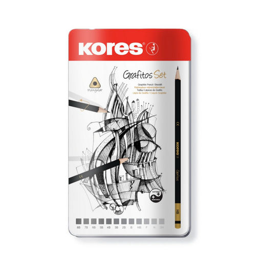 Набор карандашей чернографитных Kores GRAFITOS,трехгр.12 шт.(2Н-8В), 92162