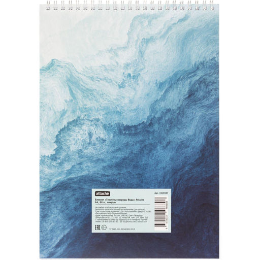 Блокнот А4 80л Attache Текстуры природы Вода клетка, греб, картон, ВД-лак