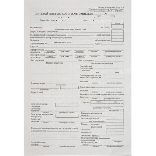 Бланк Путевой лист легк.авто (книж.100л),газетн.бум, 20 блоков/уп (1081334)