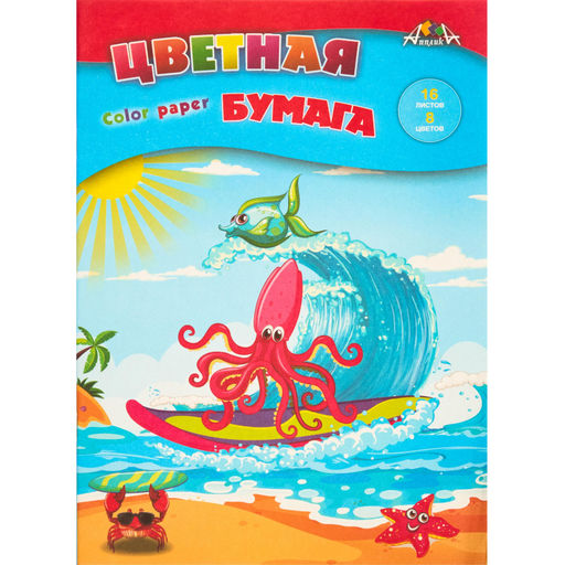 Цена за 2 шт. Бумага цветная 16л,А4,8цв,скреп,50гр,5диз,С0005 в асс