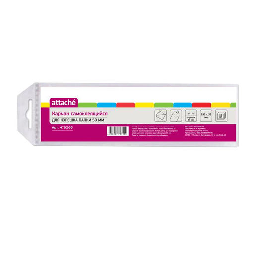 Самоклеящиеся карманы Attache корешок папки 50 мм,191х35 мм,10 шт