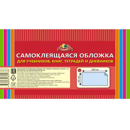 Обложка самокл. в рулоне Апплика д/учеб.,книг,тетр., 450х1000, ПВХ 80мкм