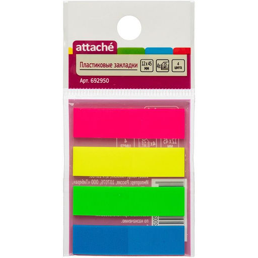Клейкие закладки пласт. 4цв.по 25л. 12ммх45 Attache