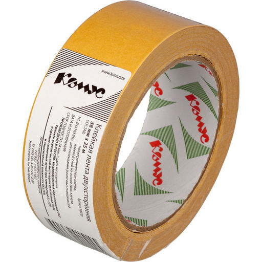 Клейкая лента двусторонняя Комус 38мм х 25м, полипропилен