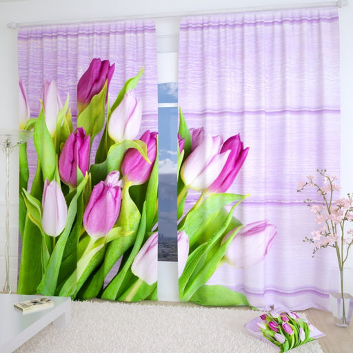 Фотошторы Тюльпаны на фиолетовых досках