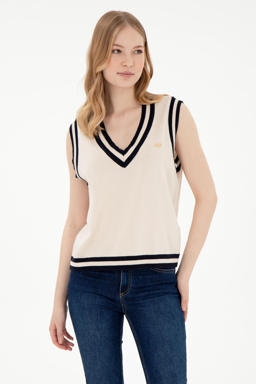 Женский кремовый свитер с v-образным вырезом Неожиданная скидка в корзине