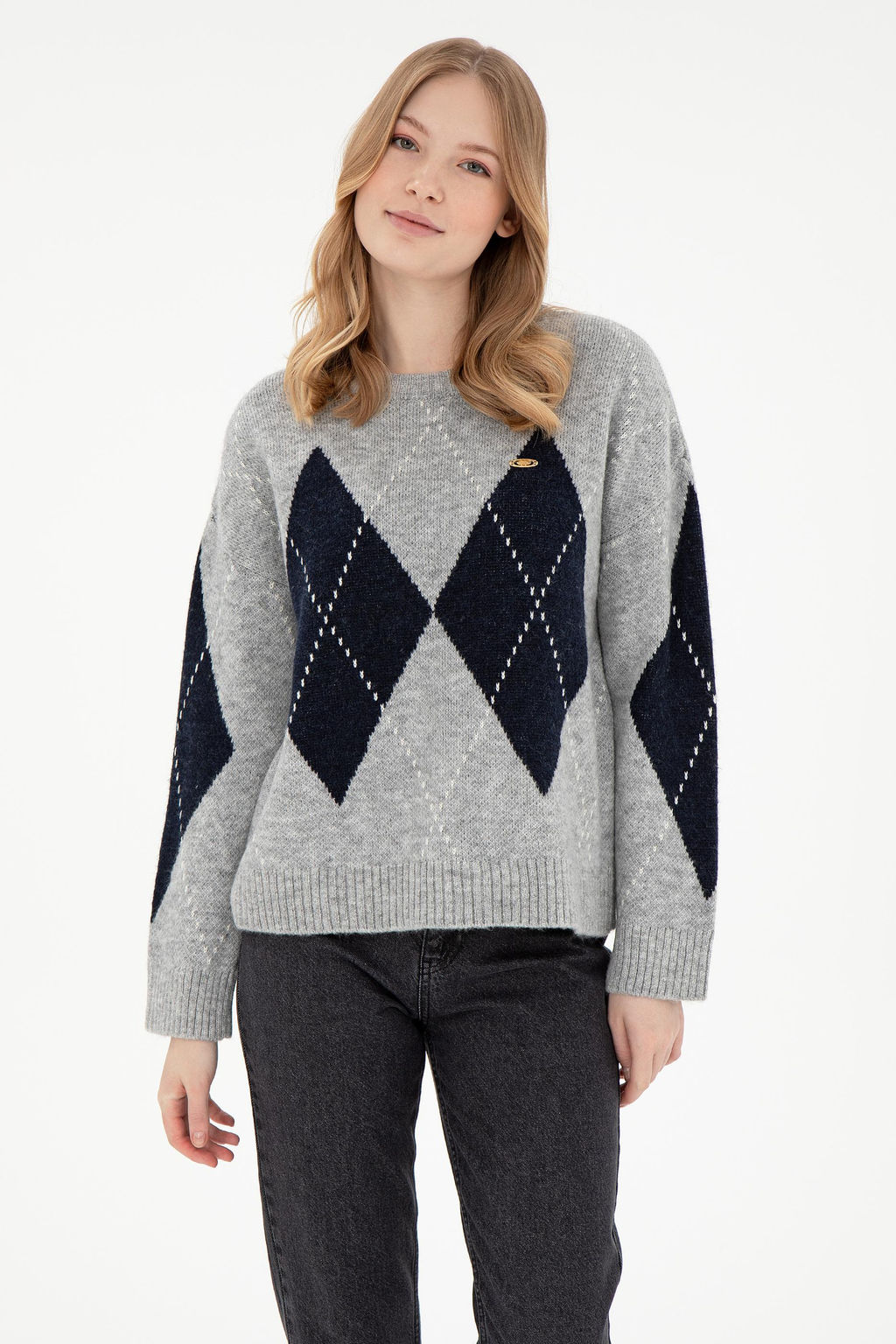 Женский серый меланжевый свитер с круглым вырезом Неожиданная скидка в корзине