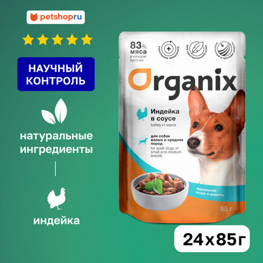 "Упаковка 24 шт" Паучи для собак мелких и средних пород "Идеальная кожа и шерсть": индейка в соусе