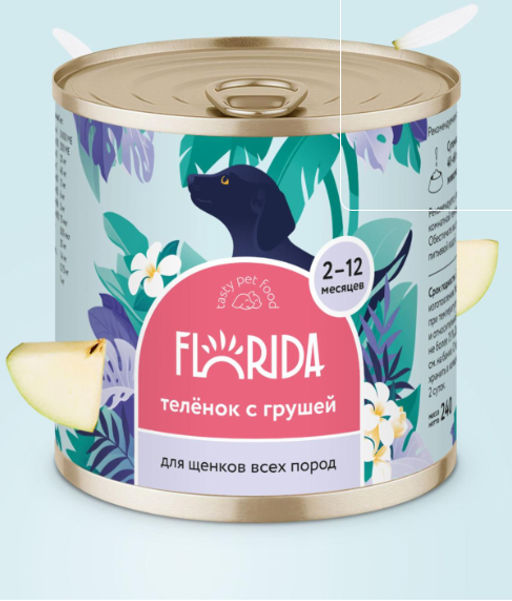 Корм консервированный полнорационный для щенков из телёнка с грушей 22ел16