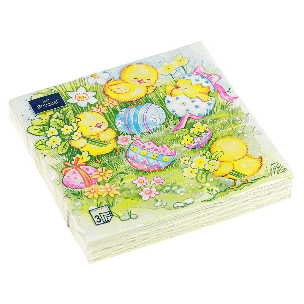 Салфетки бумажные "Art Bouquet" 33х33см, 3-х слойные, 20 штук в упаковке, 100% целлюлоза, "Пасхальные игры" (Россия)