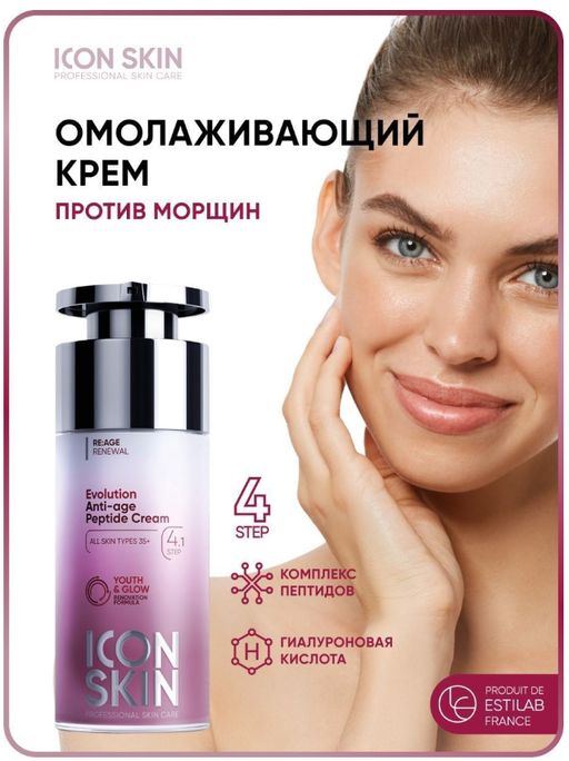 Омолаживающий крем для лица с гиалуроновой кислотой. Антивозрастной комплекс пептидов. 35+. 30 мл