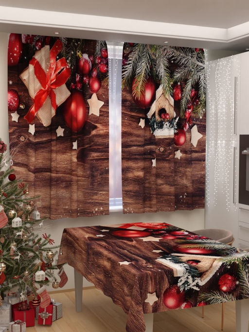 Фотошторы для кухни Новогодняя коллекция 589 Фотошторы ткань Габардин