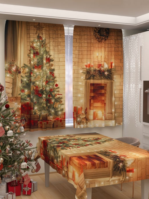 Фотошторы для кухни Новогодняя коллекция 241 Скатерть 145*200