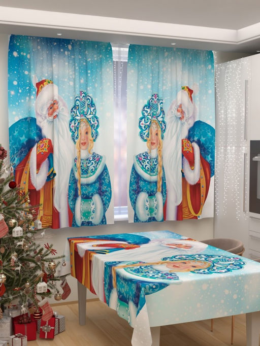 Фотошторы для кухни Дед мороз и снегурка 2 Скатерть 145*200