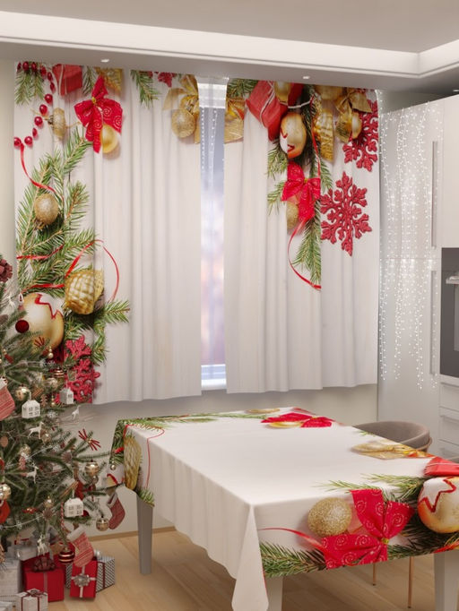 Фотошторы для кухни Новогодняя коллекция 124 Скатерть 145*200