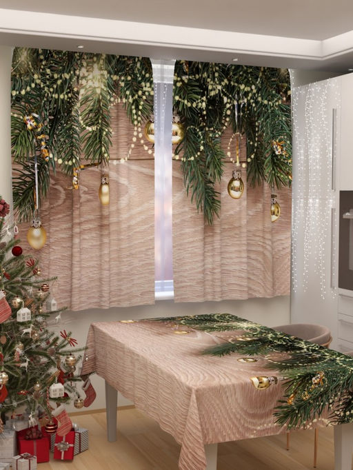 Фотошторы для кухни Новогодняя коллекция 108 Скатерть 145*200