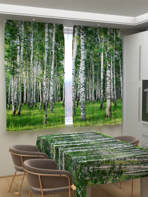 Фотошторы для кухни Березовая роща Скатерть 145*200