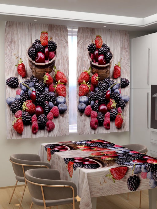 Фотошторы для кухни Ассорти Шторы (Габардин)+Скатерть (145*145)
