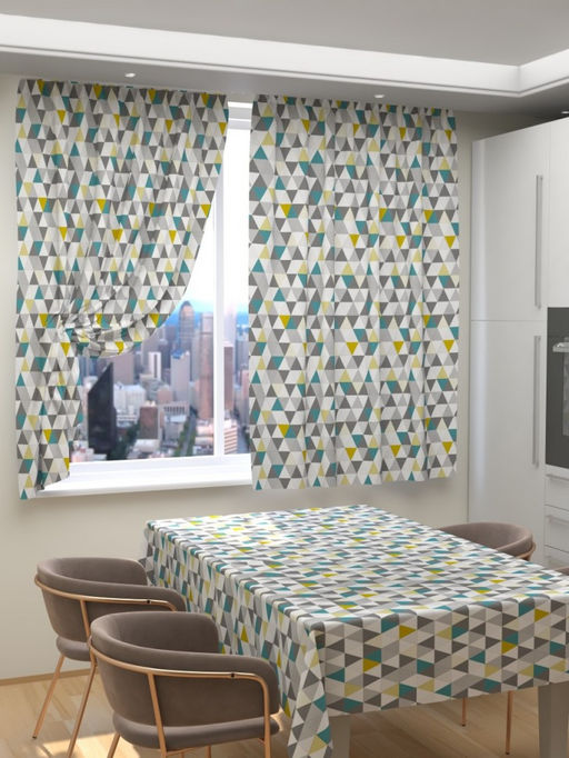 Фотошторы для кухни Изумрудные треугольники Скатерть 145*145