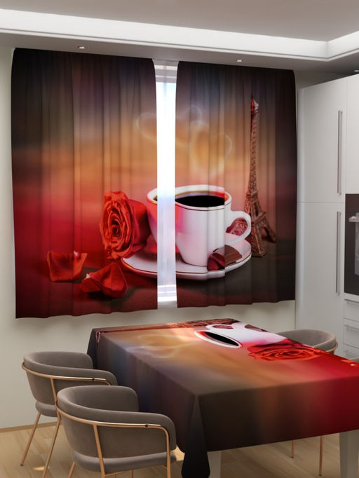 Фотошторы для кухни Кофе в Париже Фотошторы ткань Габардин