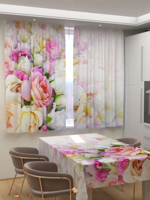 Фотошторы для кухни Легкость Шторы (Габардин)+Скатерть (145*145)