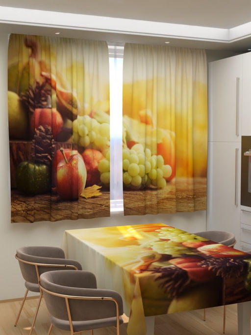 Фотошторы для кухни Осенние фрукты Шторы (Габардин)+Скатерть (145*200)