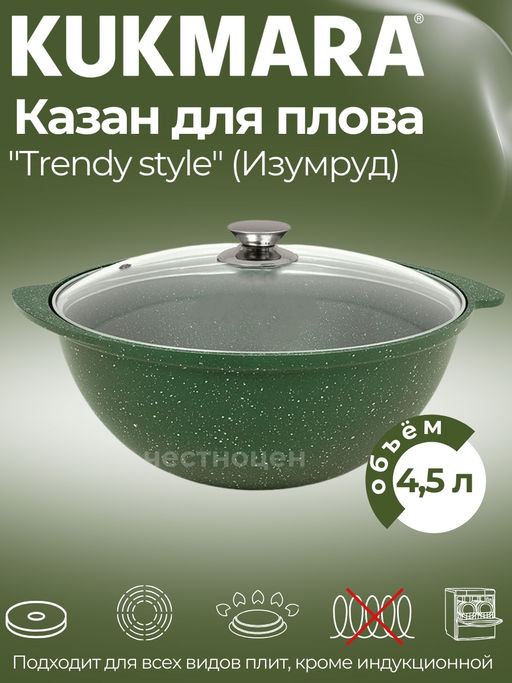 Казан для плова 4,5л со стекл.крышкой АП "Изумруд" к47и