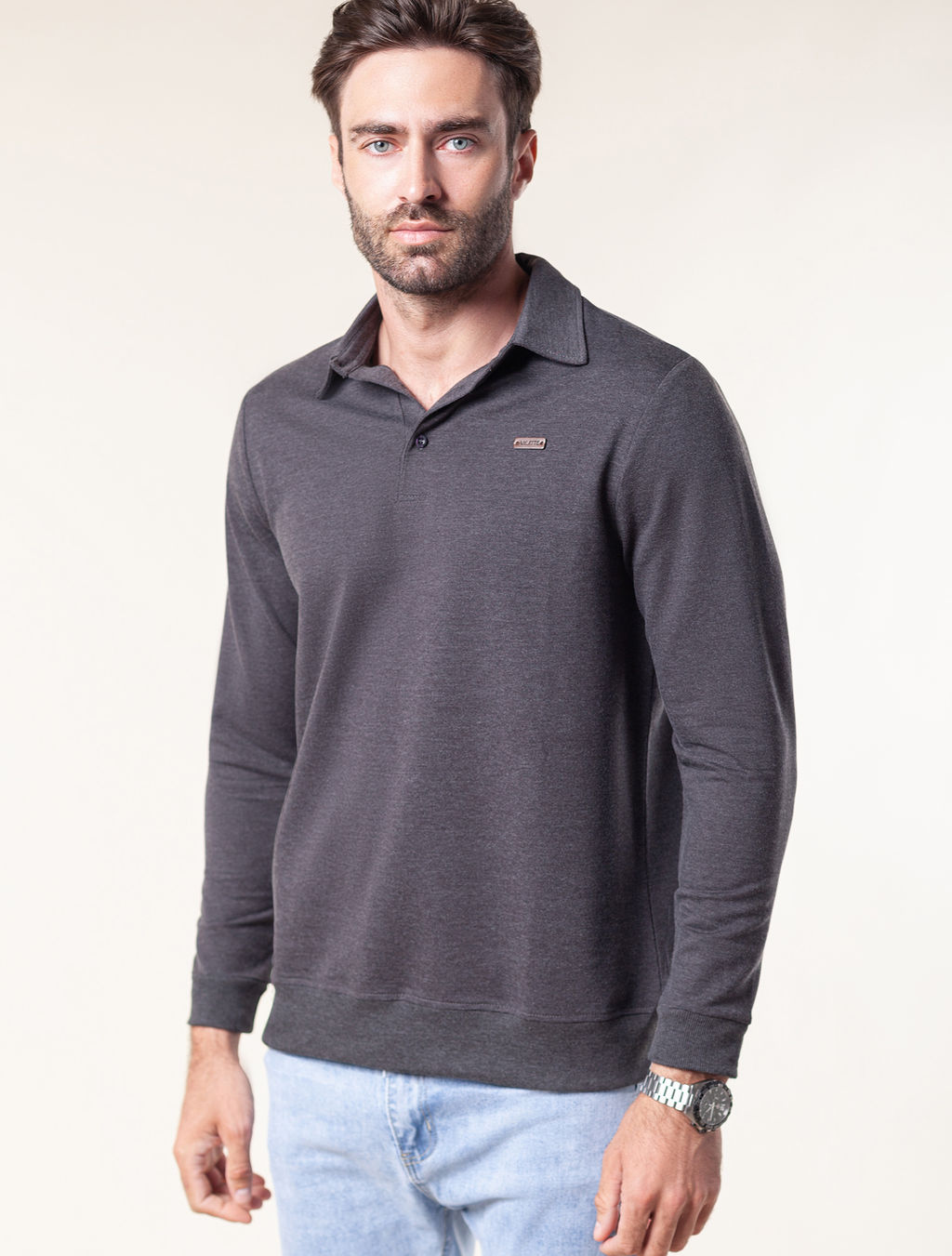 VILATTE / Джемпер-поло из эластичного футера с застежкой на пуговицы