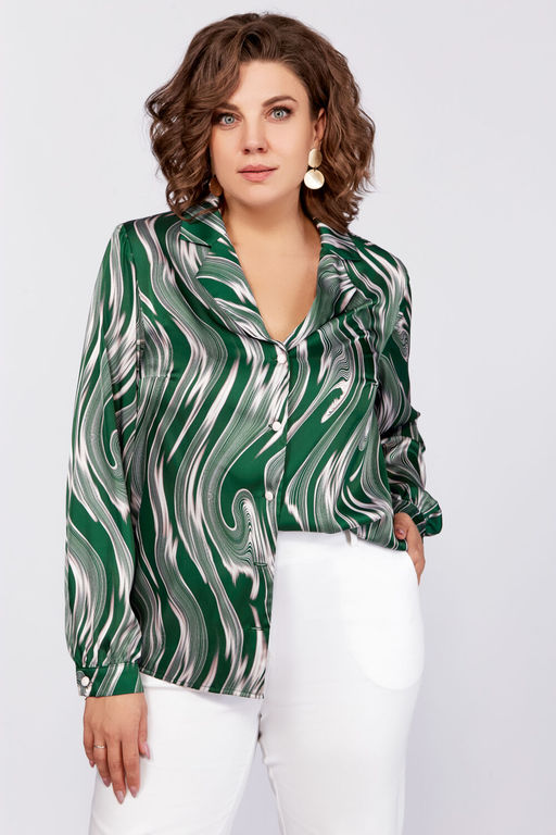 Артикул: Блуза Swallow 783-Р зеленый+бежевые разводы
