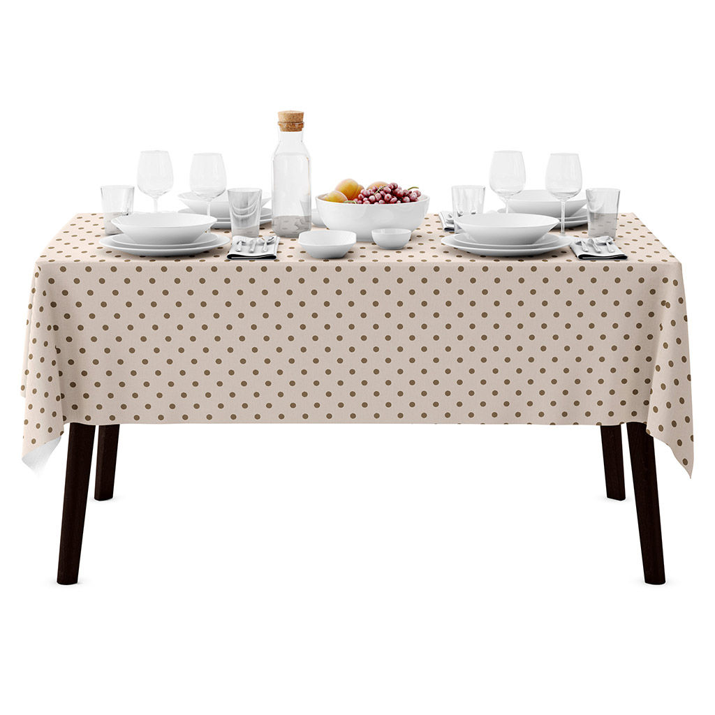 Скатерть 180х145см "Горошек" беж, длина стола до 140см, на 6 персон, рогожка 186/м2, хлопок 100%, упаковка классическая 28х41см, "Домашняя мода" (Россия)