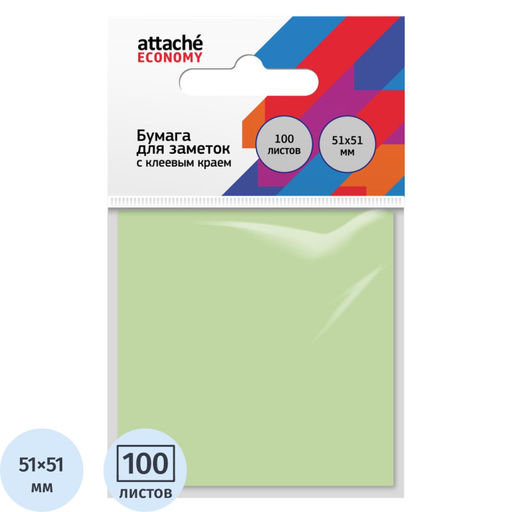 Бумага для заметок с клеевым краем Economy 51x51 мм 100 л пастел. зеленый