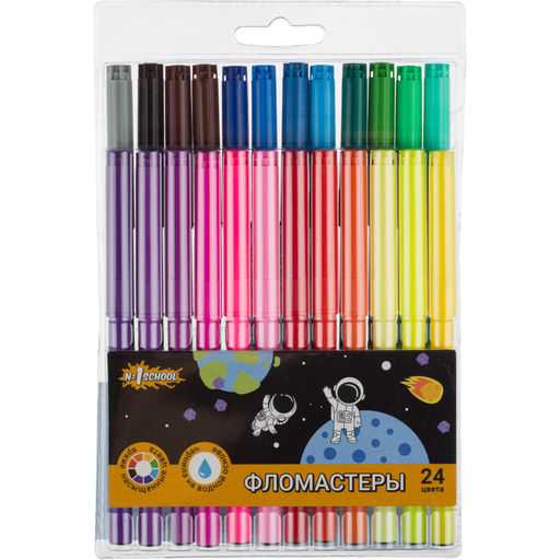 Фломастеры №1School Space time 24цв.,вентилир.,смыв., блист. упак