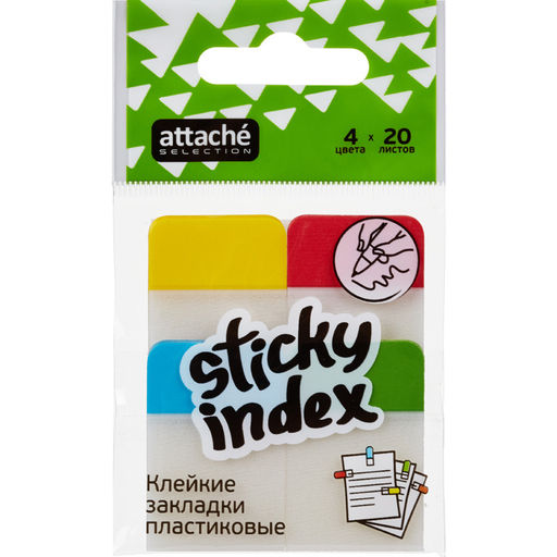 Клейкие закладки пласт. 4цв.по 20л. 38ммх25 Attache Selection