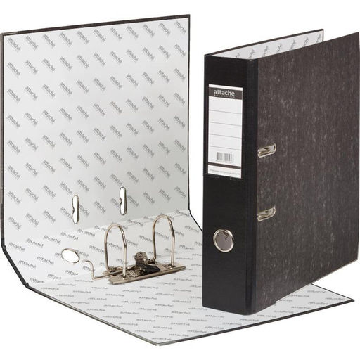 Папка-регистратор мрамор 70мм,черн,бум/бум,карм.кор.,мет.уг