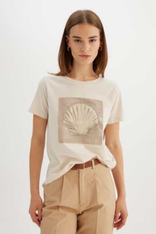Regular Fit Bisiklet Yaka Bask?l? Penye K?sa Kollu Tisort