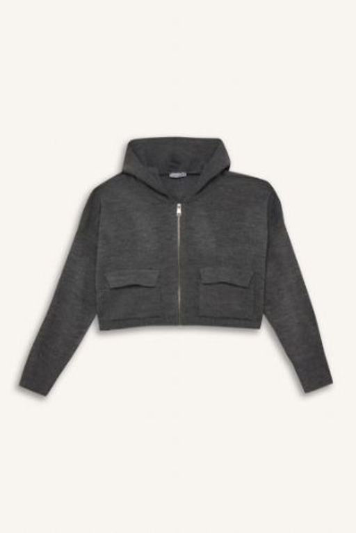 Regular Fit Kapusonlu Basic Duz Fermuarl? Triko H?rka