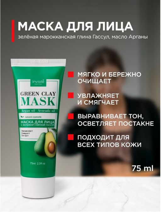Маска с зеленой глиной Гассул маслом Арганы и Авокадо 75 мл