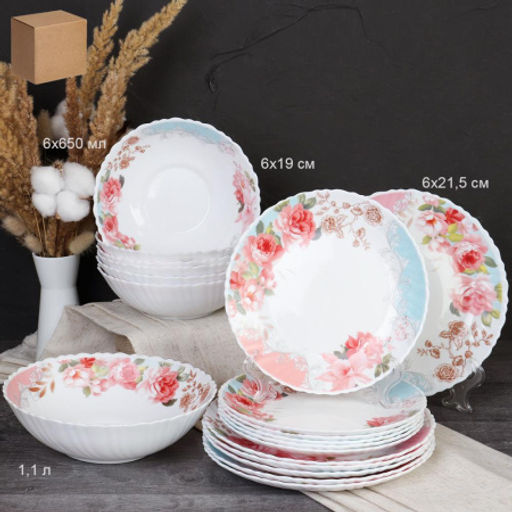 Столовый набор 19 предметов / GRAY-19/758578 (6801) /уп 2/ Розы на голубом