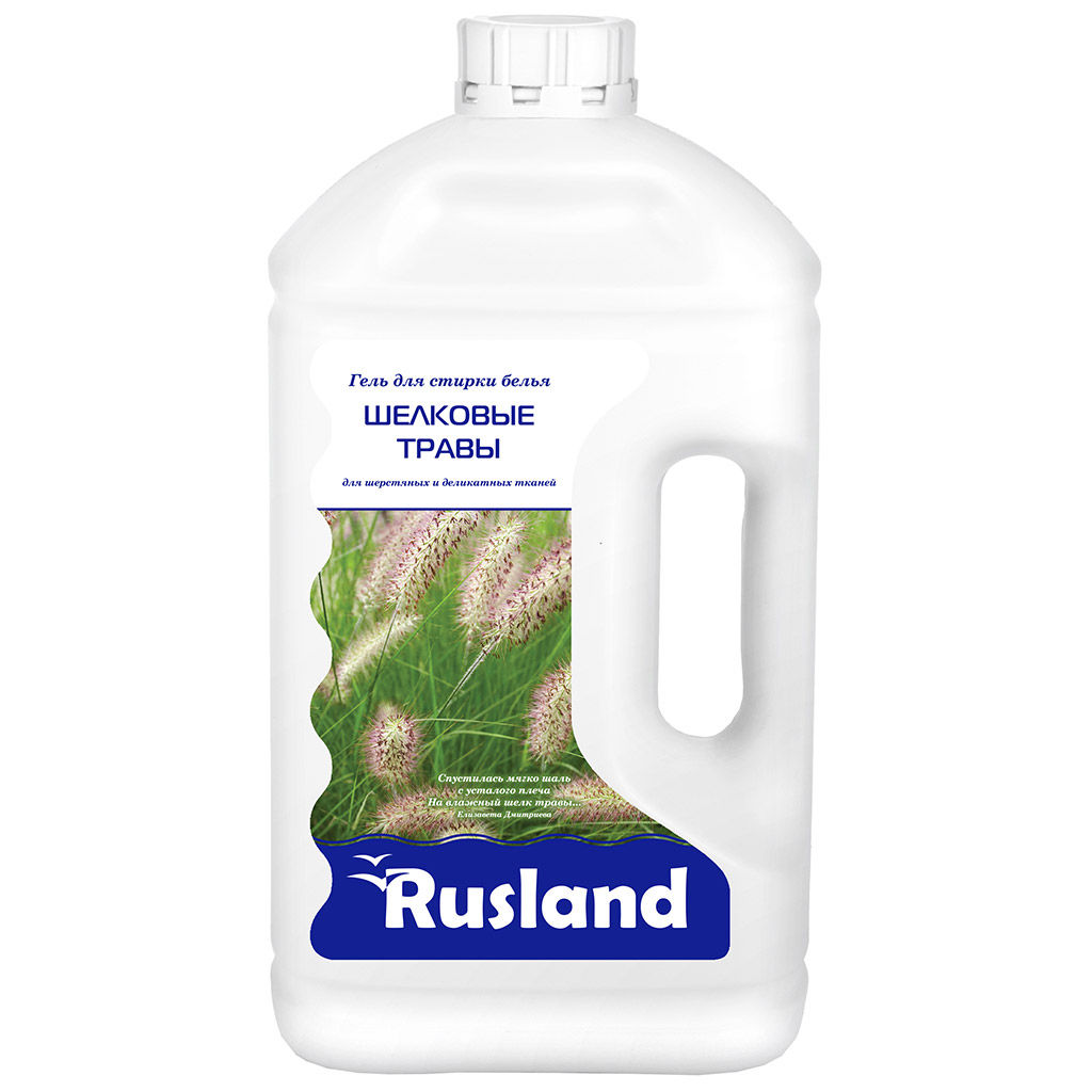 Гель для стирки белья для шерстяных и деликатных тканей 2,5л, "Шелковые травы", 15х9,5х29см, "Rusland" (Россия)