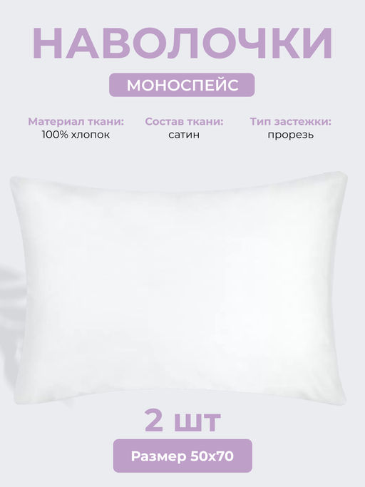 Наволочка 2 шт 50х70 см Моноспейс белый