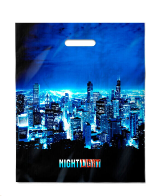 Цена за 50 шт. Пакет 38х47/60мкм Ночные огни ПВД ламинированный с прорубной ручкой (уп 50/500)