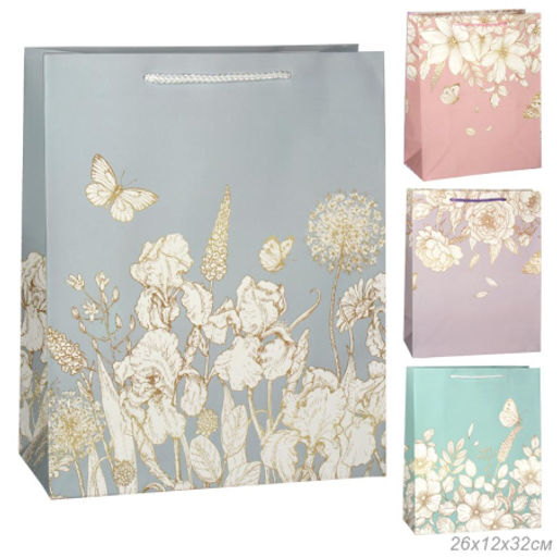 Цена за 12 шт. Пакет подарочный 26х32х12см Цветы / 5306L /уп 12/384/210 г