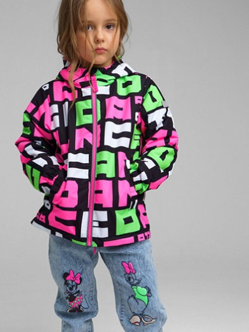 12222705 Куртка текстильная с полиуретановым покрытием для девочек (ветровка), разноцветный