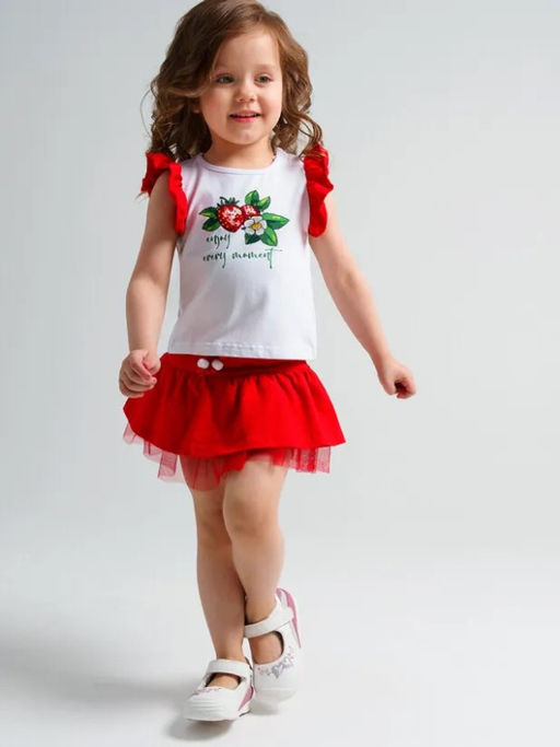 12429017 Комплект детский трикотажный для девочек: фуфайка (футболка), юбка-шорты
