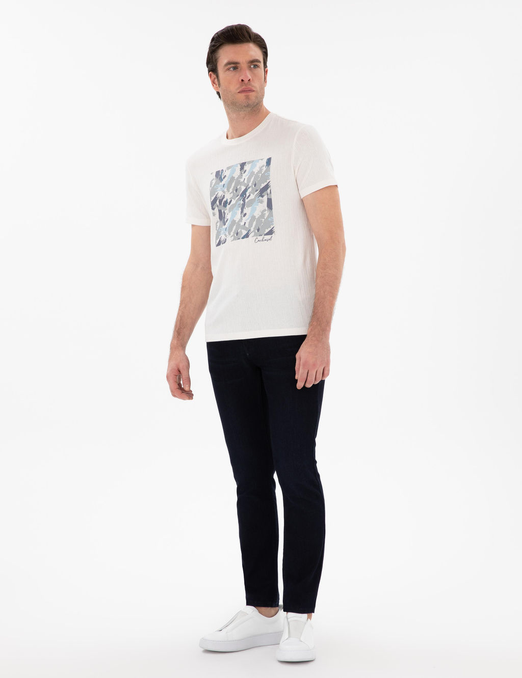 Темно -синий синий стройный джинсы брюки