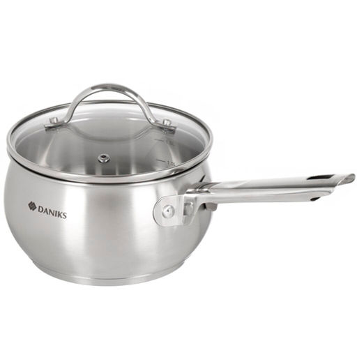 Ковш нержавеющая сталь, 2 л, крыш. стекло, руч/нерж., индукция, Daniks, Эмилия, CW-W075-16S(427878)