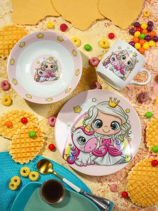 Набор посуды кер 3пр. Принцесса и единорог (тарелка 17.5см, салатник 15см, кружка 230мл) 435314 /Dan