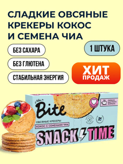 ХИТ! Крекеры овсяные сладкие кокос и семена чиа 125г