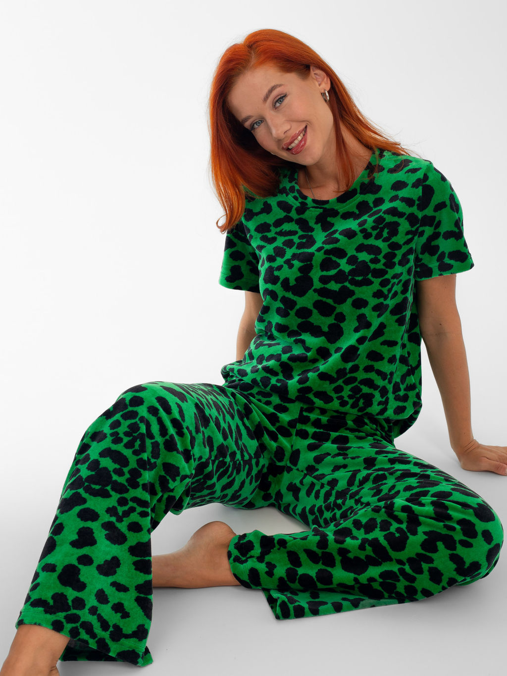 Костюм женский велюровый с брюками "ЭЛЬЗА" ЗЕЛЕНЬ