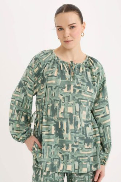 Regular Fit Buzgulu Yaka Desenli Uzun Kollu Bluz
